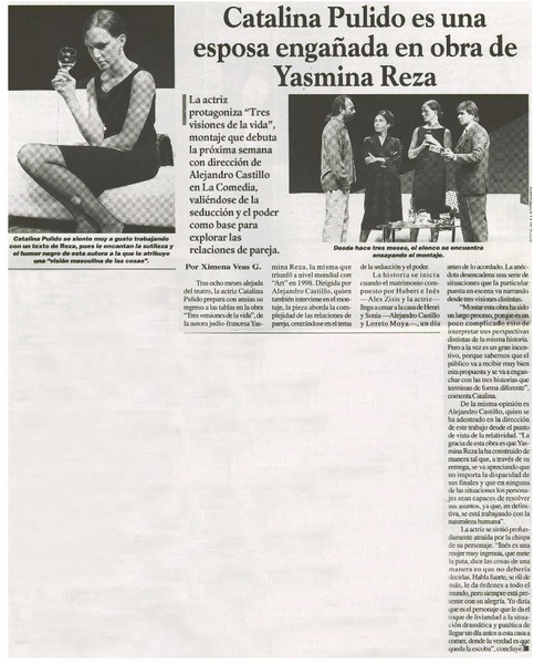 Catalina Pulido es una esposa engañada en obra de Yasmina Reza [artículo] Ximena Veas G.