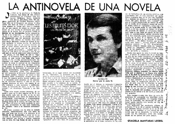 Nathalie Sarraute, "las frutas de oro" [artículo] Hernán del Solar.