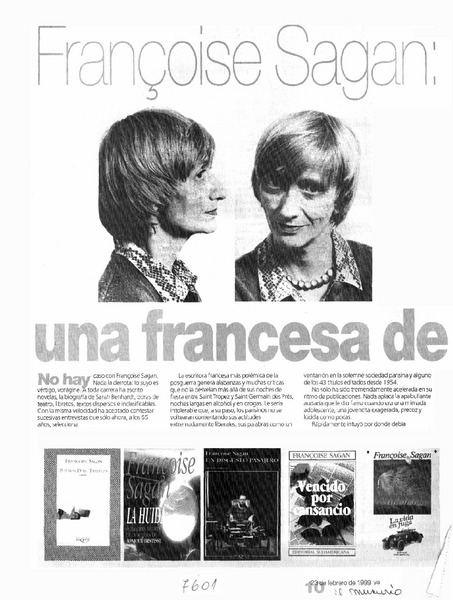"Buenos días, tristeza" una vida despues : François Sagan [artículo] Mari Rodríguez Ichaso.