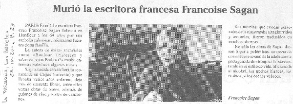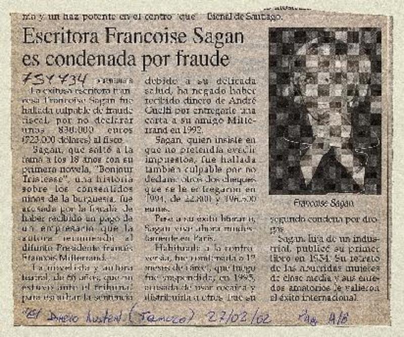 Escritora Francoise Sagan es condenada por fraude [artículo]