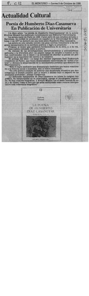 Poesía de Humberto Díaz-Casanueva en publicación de Universitaria [artículo].