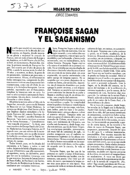 Françoise Sagan y el saganismo [artículo] Jorge Edwards.