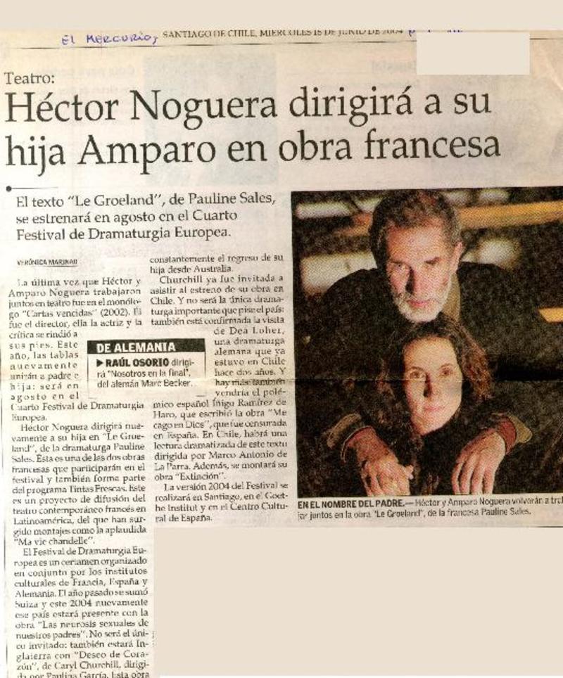 Héctor Noguera dirigirá a su hija Amparo en obra francesa [artículo] Verónica Marinao.