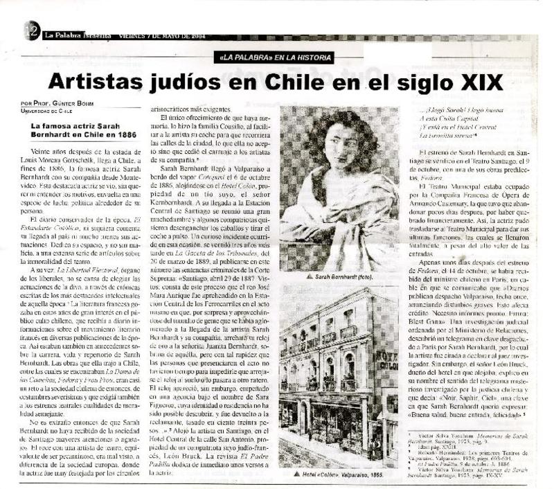 Artistas judíos en Chile en el siglo XIX [artículo] Günter Böhm.
