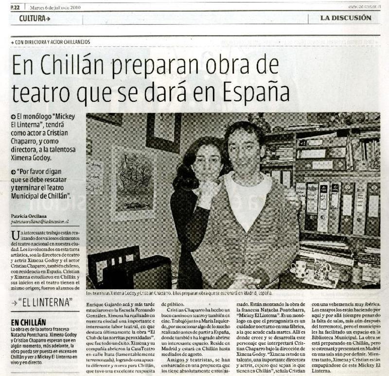 En Chillán preparan obra de teatro que se dará en España [artículo] Patricia Orellana.