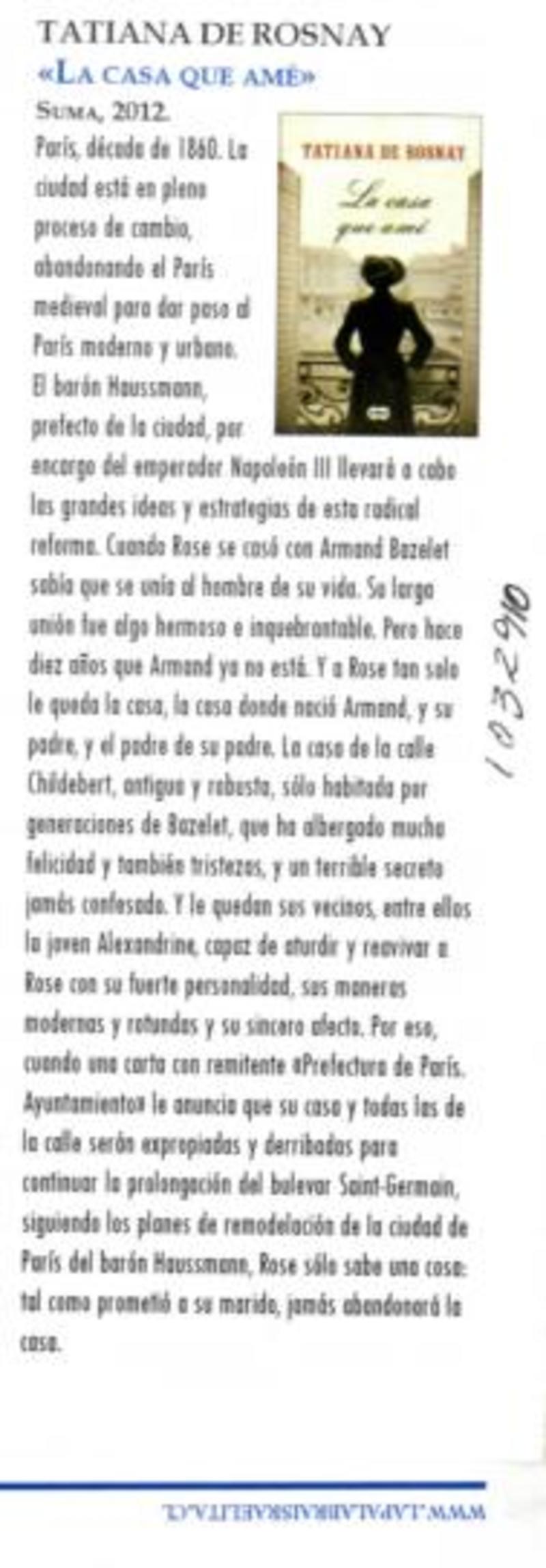 Autoras francesas - La casa que amé - Rosnay, Tatiana de