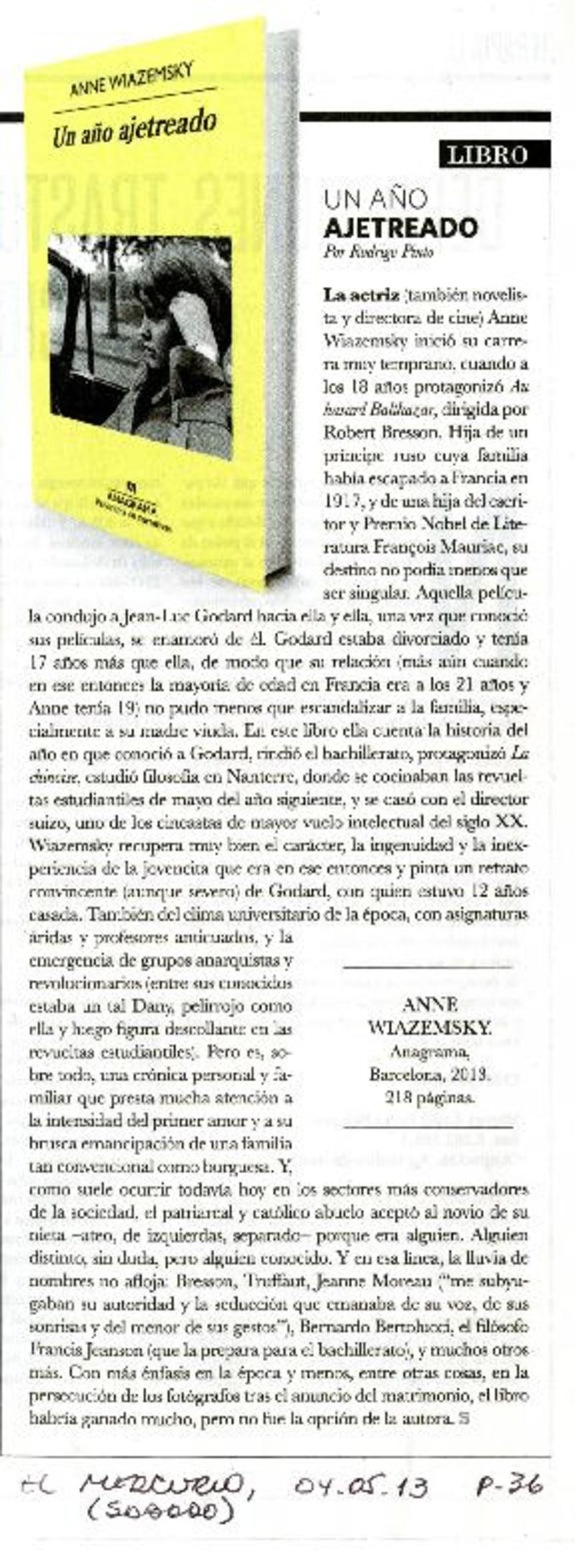 Autoras francesas - Wiazemsky, Anne - Un año ajetreado