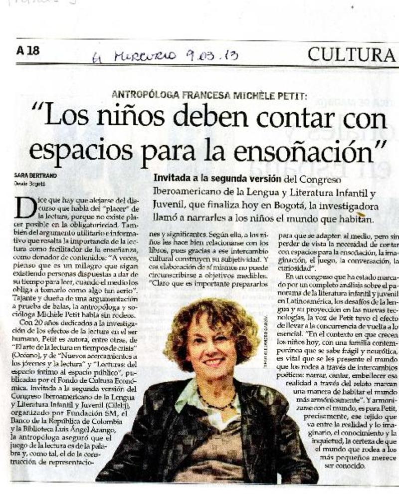 "Los niños deben contar con espacios para la ensoñación" [artículo] Sara Bertrand.