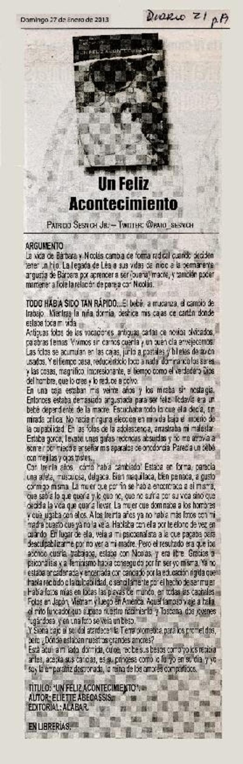 Un feliz acontecimiento [artículo] Patricio Sesnich Jr.
