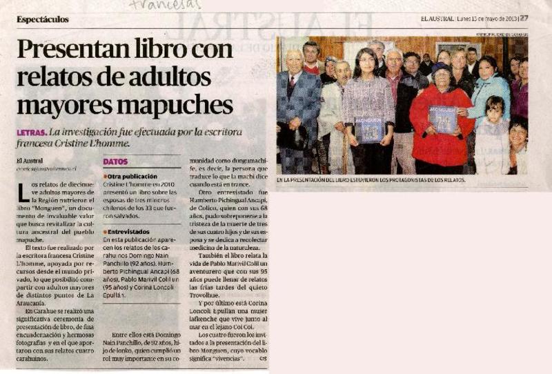 Presentan libro con relatos de adultos mayores mapuches. [artículo]
