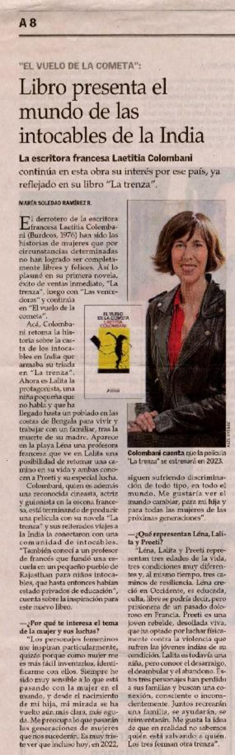 Entrevistas - Autoras francesas - Colombani, Laetitia - "El vuelo de la cometa"