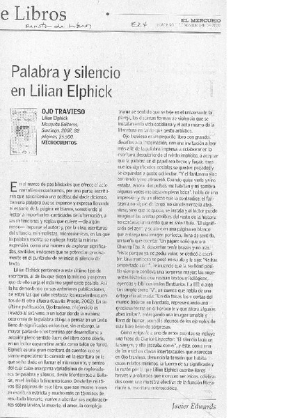 Palabra y silencio en Lilian Elphick [artículo] Javier Edwards.