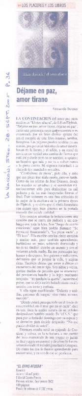 Déjame en paz, amor tirano [artículo] Fernanda Donoso.