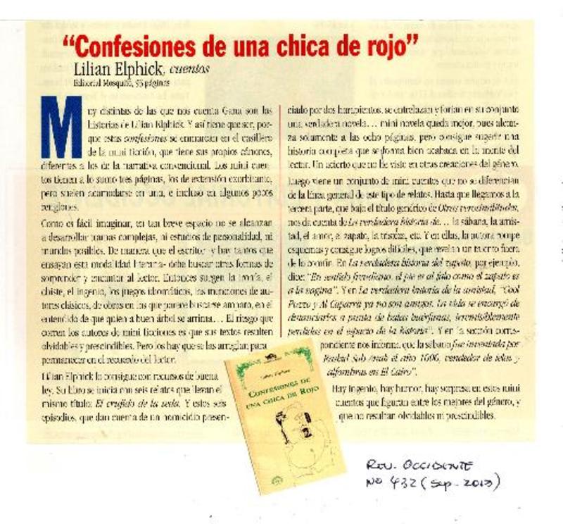 Autoras chilenas - Elphick L., Lilian - "Confesiones de una chica de rojo"