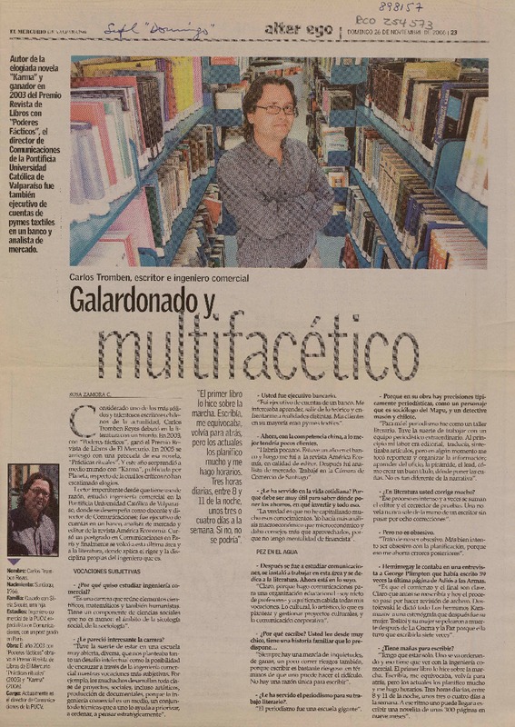 Galardonado y multifacético (entrevista) [artículo] Rosa zamora C.