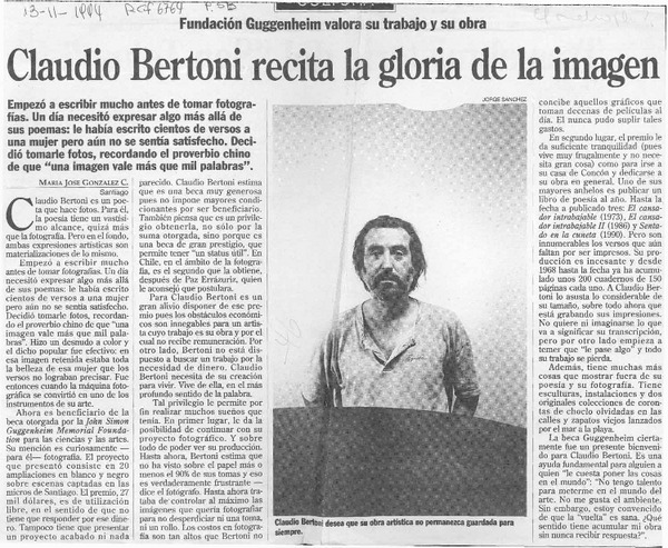 Claudio Bertoni recita la gloria de la imagen [artículo] María José González C.