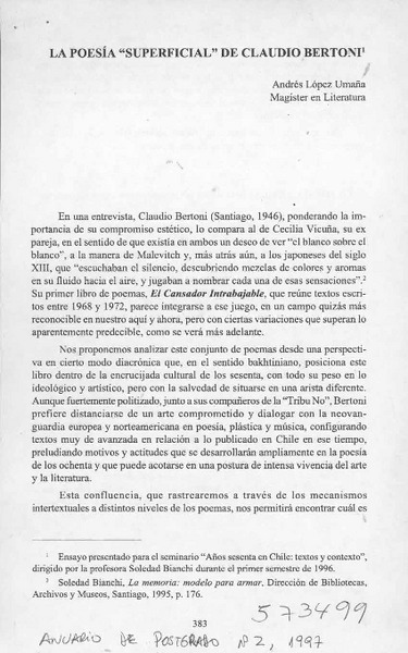 La poesía "Superficial" de Claudio Bertoni [artículo] Andrés López Umaña