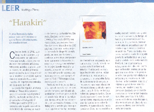 Autores chilenos - Entrevistas - Bertoni Lemus, Claudio - Harakiri