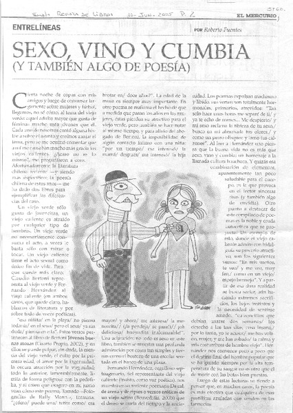 Sexo, vino y cumbia (y también algo de poesía) [artículo] Fuentes, Roberto