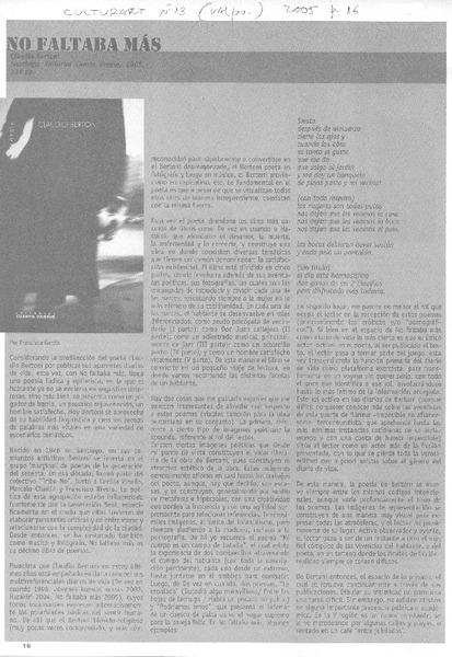 Autores chilenos - Entrevistas - Bertoni Lemus, Claudio - No faltaba más