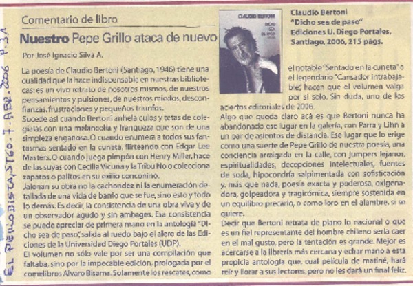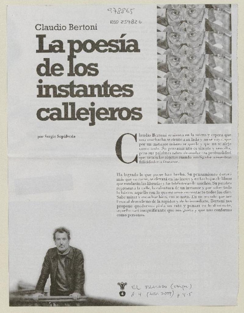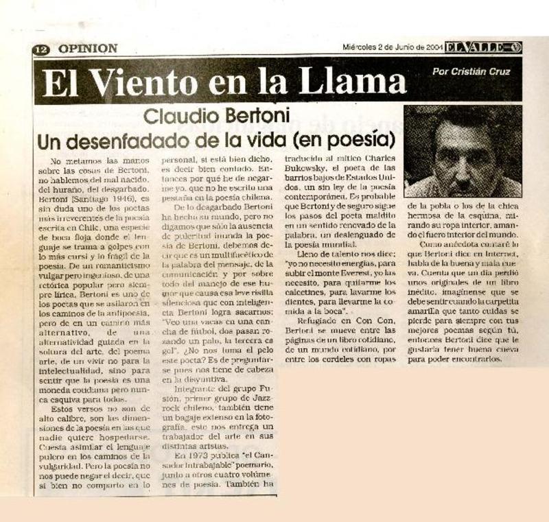 Claudio Bertoni, un desenfadado de la vida (en poesía) [artículo] Cristián Cruz.