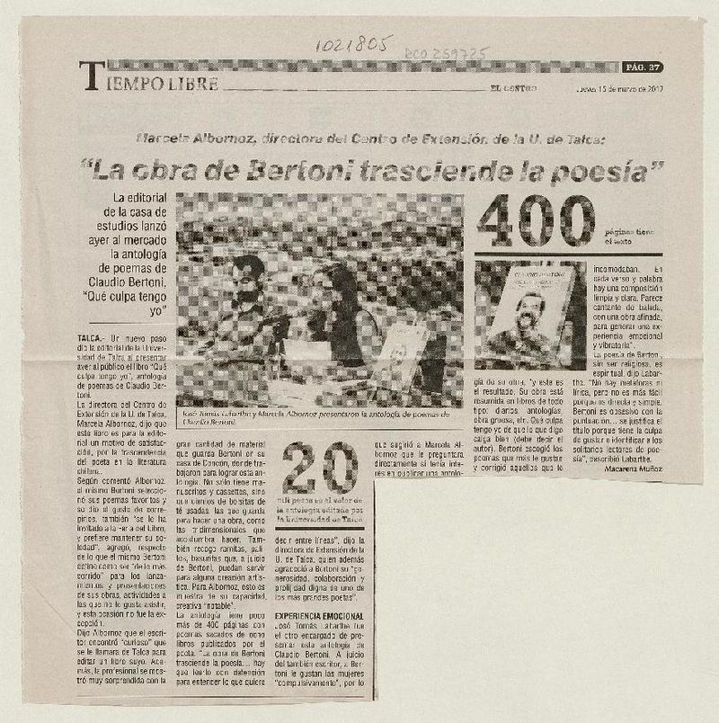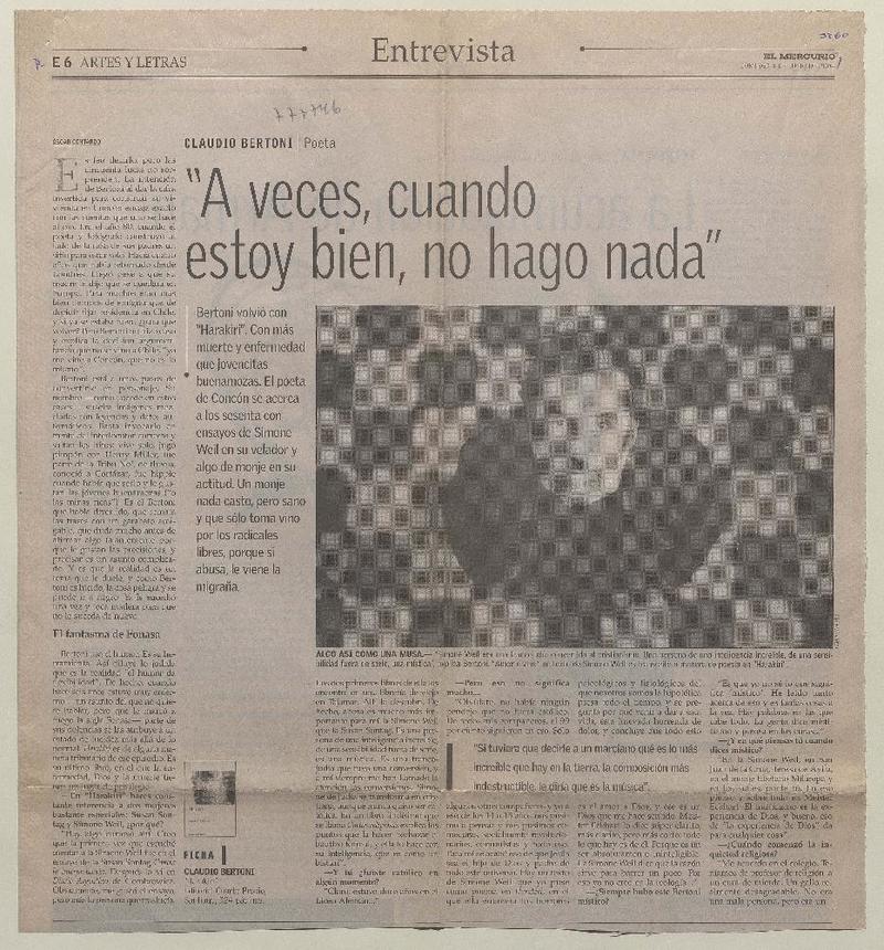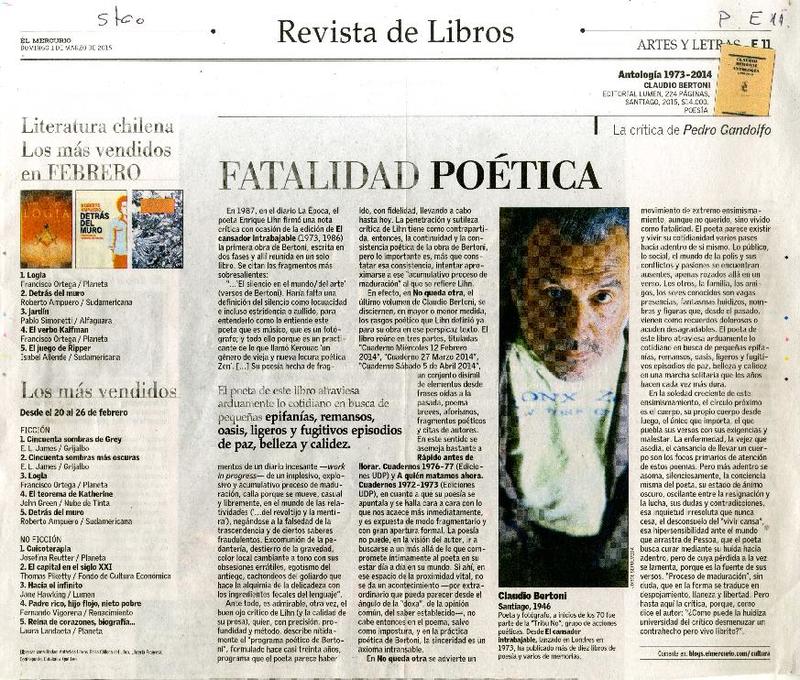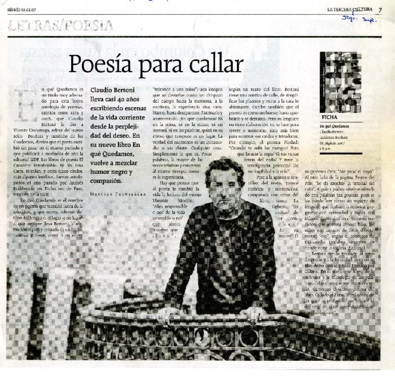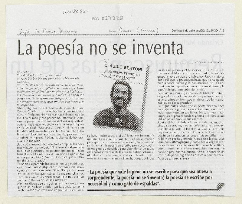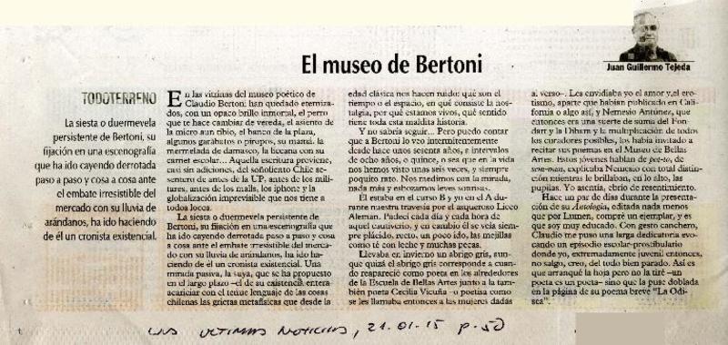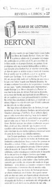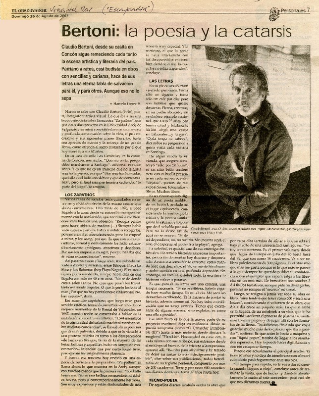 "La obra de Bertoni trasciende la poesía" [artículo] Macarena Muñoz.