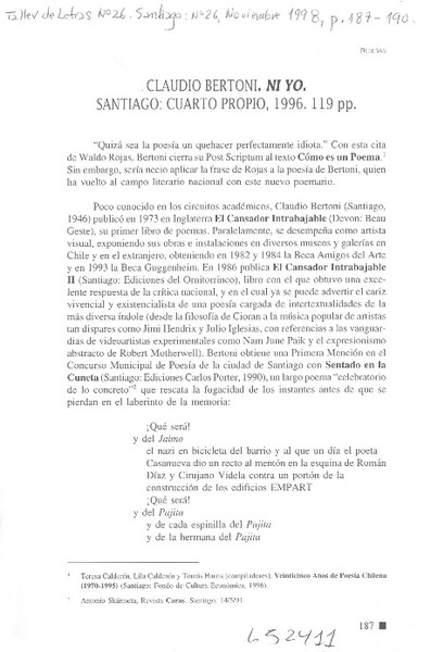 Autores chilenos - Bertoni Lemus, Claudio - Ni yo