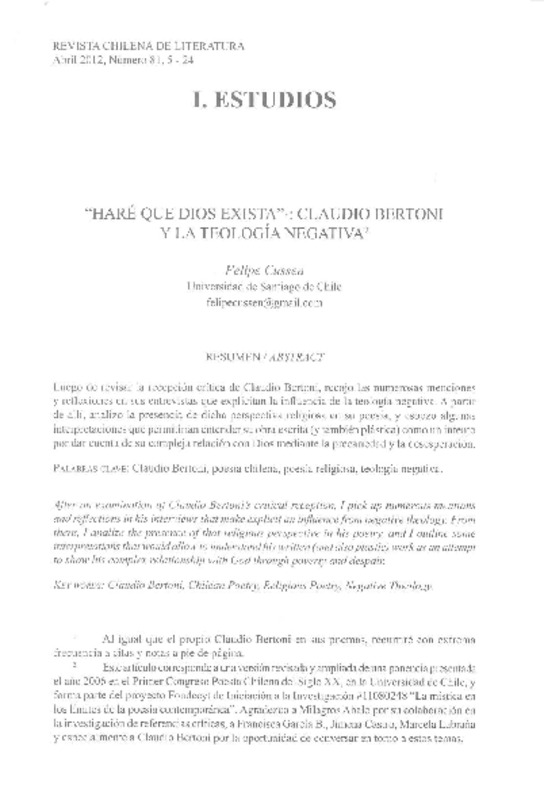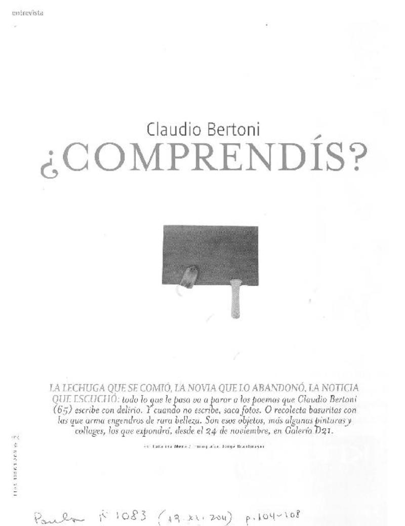 Claudio Bertoni (entrevistas) [artículo]Claudia Donoso.