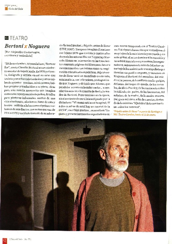 Héctor Noguera lleva a escena los diarios de vida de Claudio Bertoni [artículo] Rocío Valdez C.