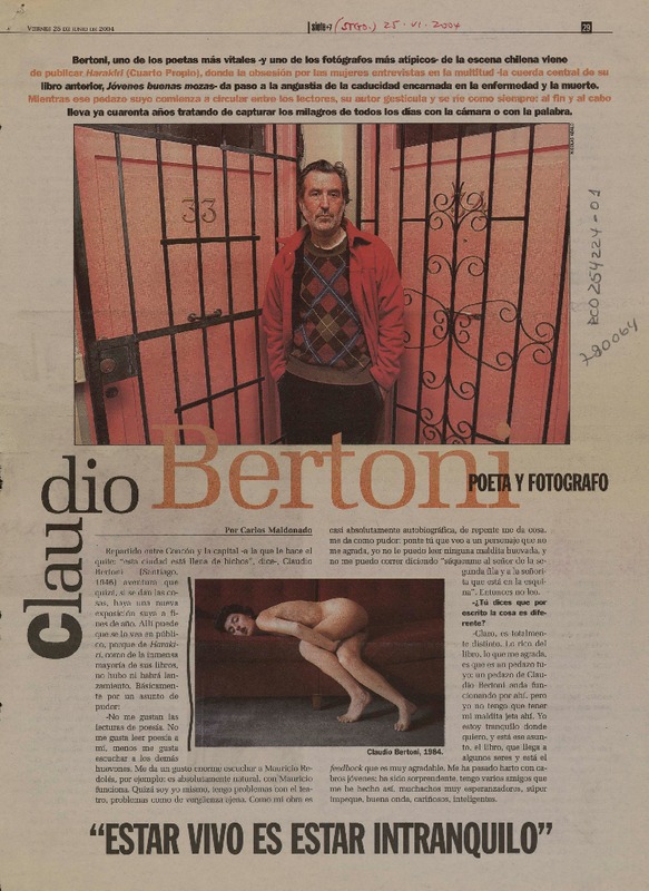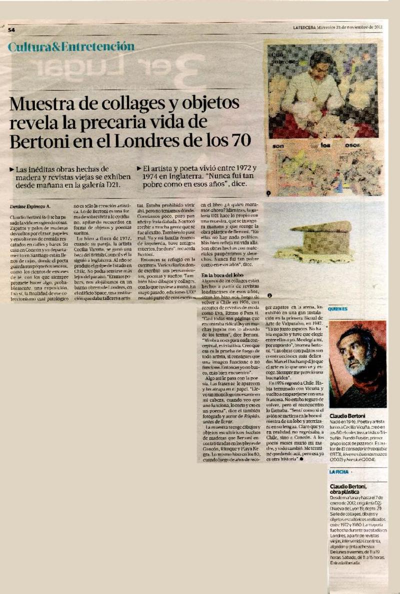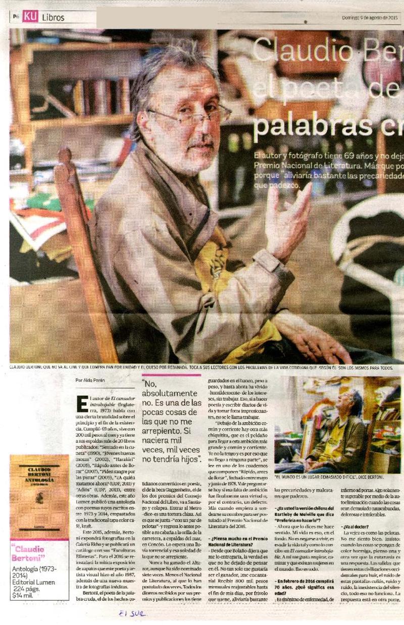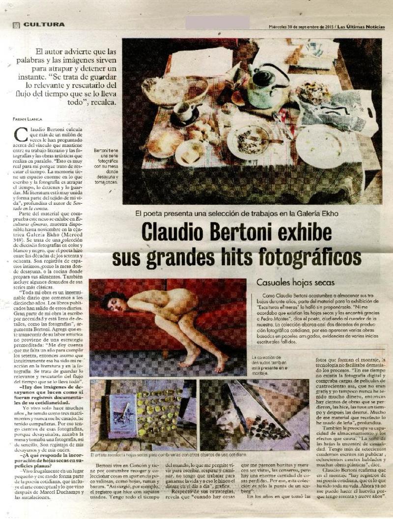 Claudio Bertoni desnuda sus intimidades diarias [artículo] Leonardo Sanhueza.