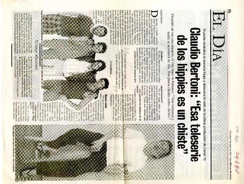 "Esa teleserie de los hippies es un chiste" (entrevista) [artículo] Carlos Vergara.