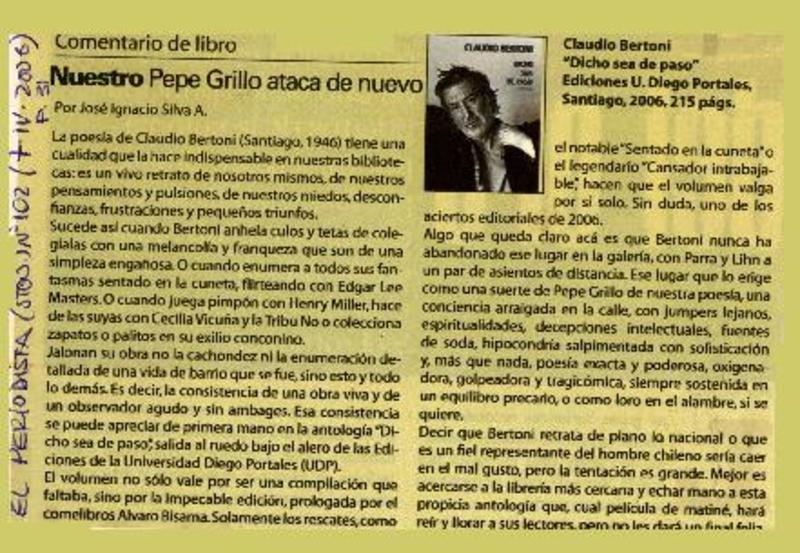 Nuestro Pepe Grillo ataca de nuevo [artículo] José Ignacio Silva A.
