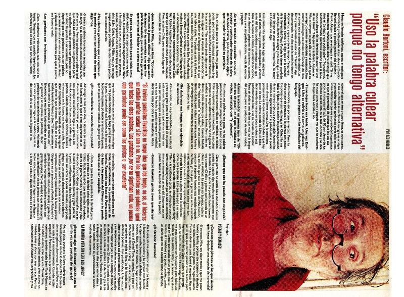 Claudio Bertoni, escritor: "Uso la palabra culear porque no tengo alternativa" (entrevista) [artículo]Leo Robles.