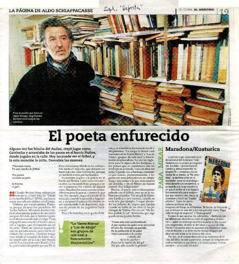 Claudio Bertoni, el poeta de las palabras crudas [entrevista] [artículo] Aldo Perán.