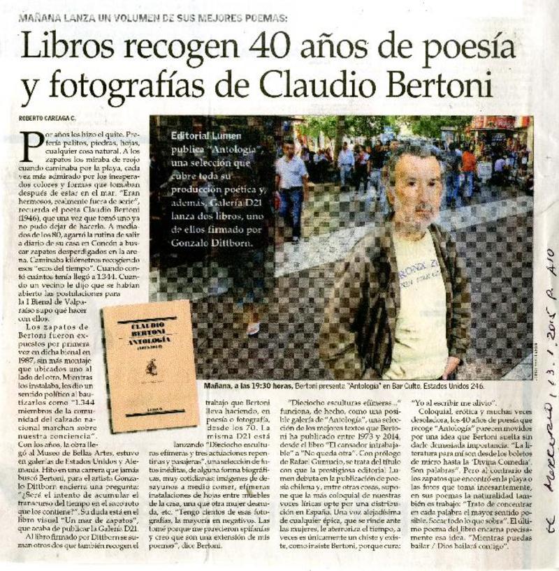 Libros recogen 40 años de poesía y fotografías de Claudio Bertoni [artículo] Roberto Careaga C.
