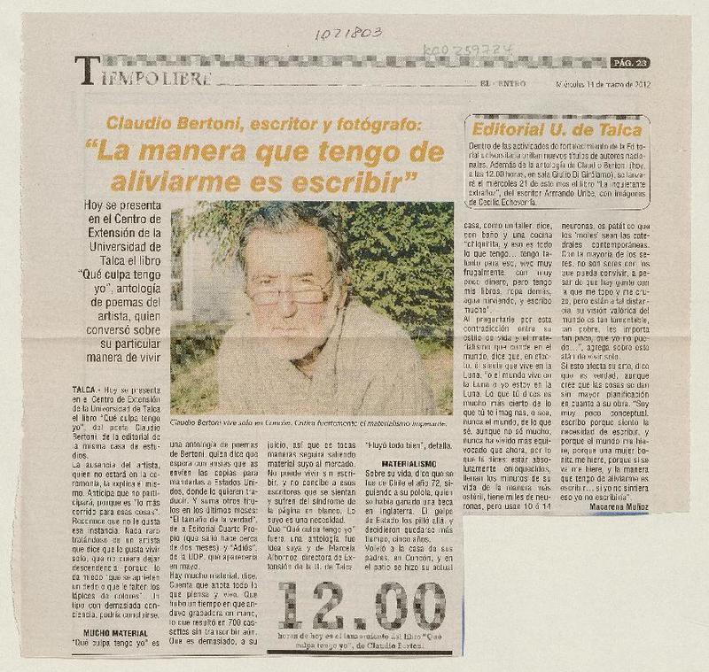 Claudio Bertoni [entrevista] [artículo] Claudia Donoso