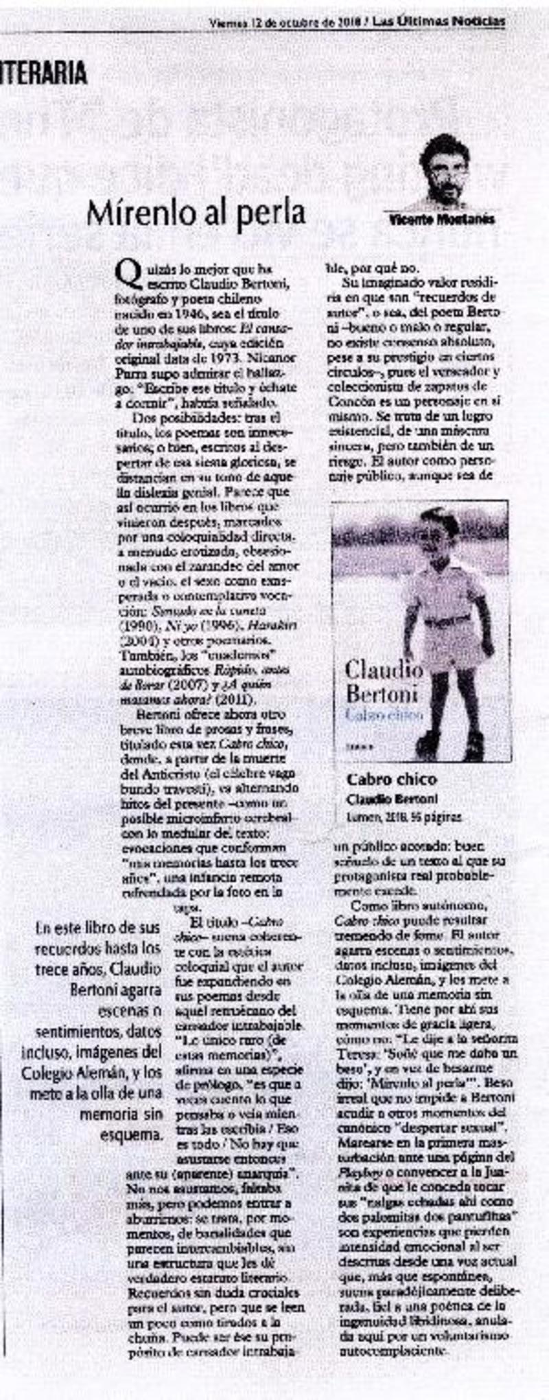 Autores chilenos - Entrevistas - Bertoni Lemus, Claudio - Cabro chico