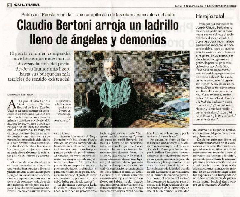 Claudio Bertoni arroja un ladrillo lleno de ángeles y demonios [artículo] Leonardo Sanhueza.