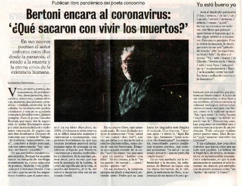 Bertoni encara al coronavirus, ¿Qué sacaron con vivir los muertos? [artículo] Leonardo Snaheza.