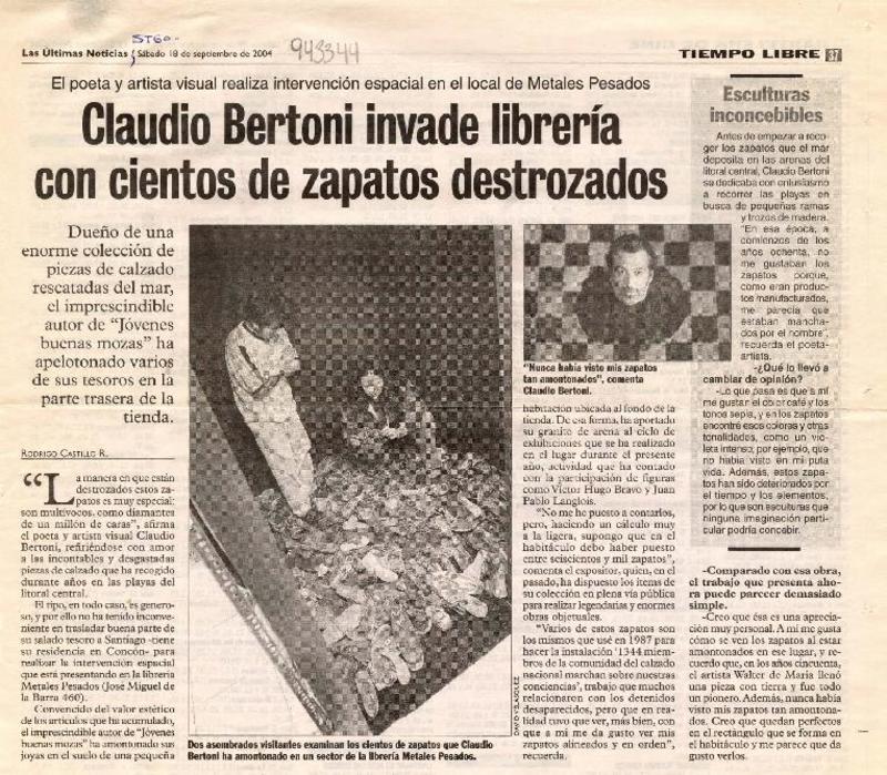 Claudio Bertoni invade librería con cientos de zapatos destrozados [entrevista] [artículo] : Rodrigo Castillo R.