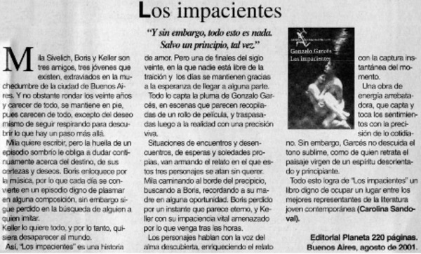 Entrevistas - Autores argentinos - Garcés, Gonzalo - Impacientes, Los