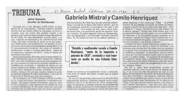 Nuestro patrono Camilo Henríquez [artículo] Gabriela Mistral.