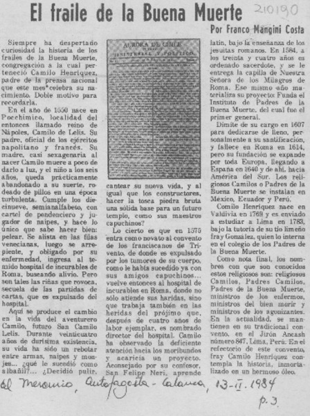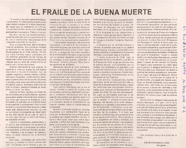 "El Fray de la buena muerte" [artículo].