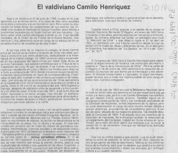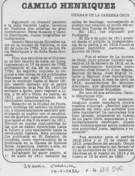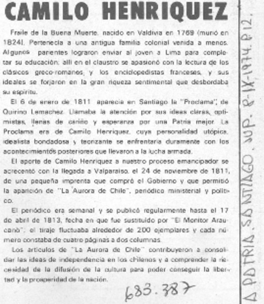 Camilo Henríquez. [artículo].