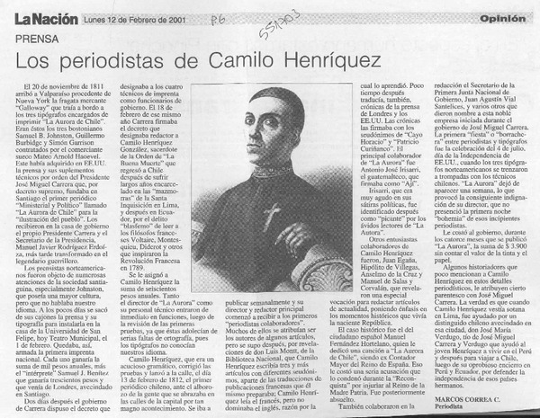 Los periodistas de Camilo Henríquez [artículo] Marcos Correa C.