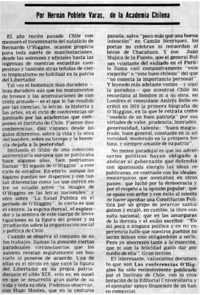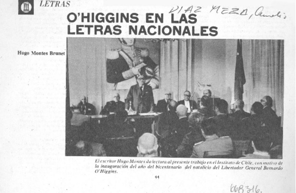 O'Higgins en las letras nacionales. [artículo]