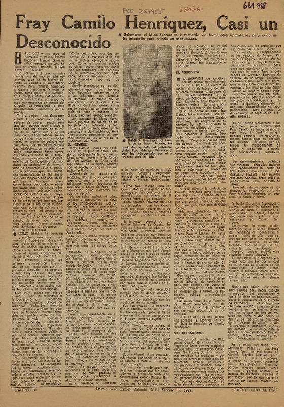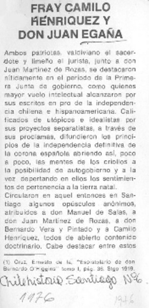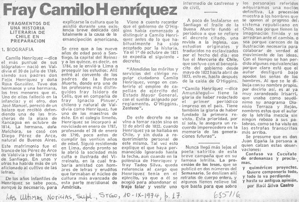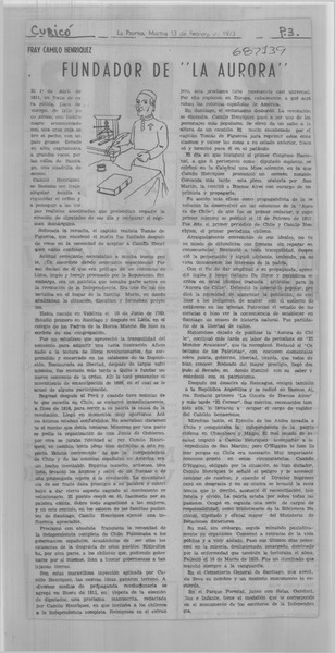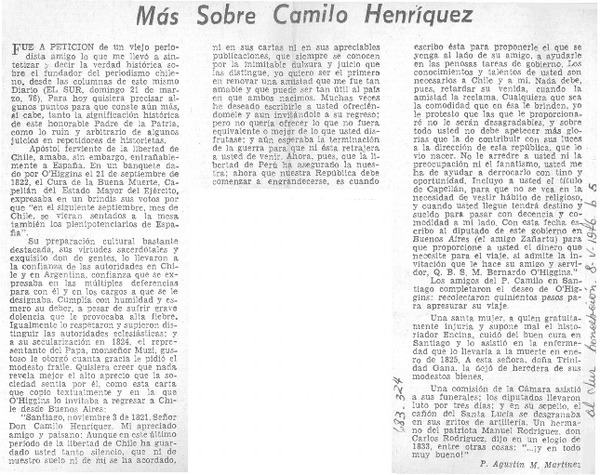 Más sobre Camilo Henríquez [artículo] P. Agustín M. Martínez.