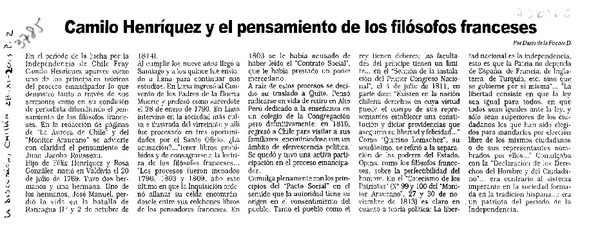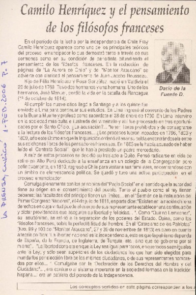 Camilo Henriquez y el pensamiento de los filosofos franceses [artículo] Darío de la Fuente D.