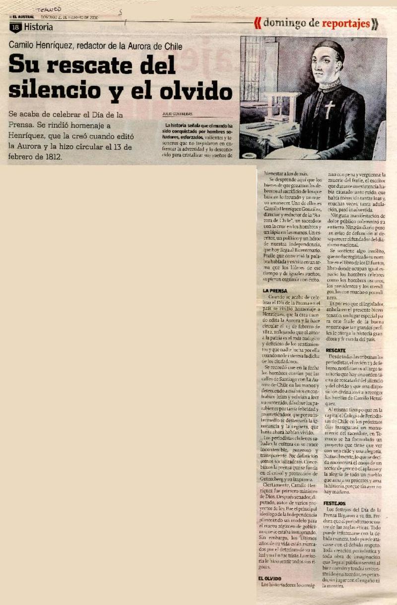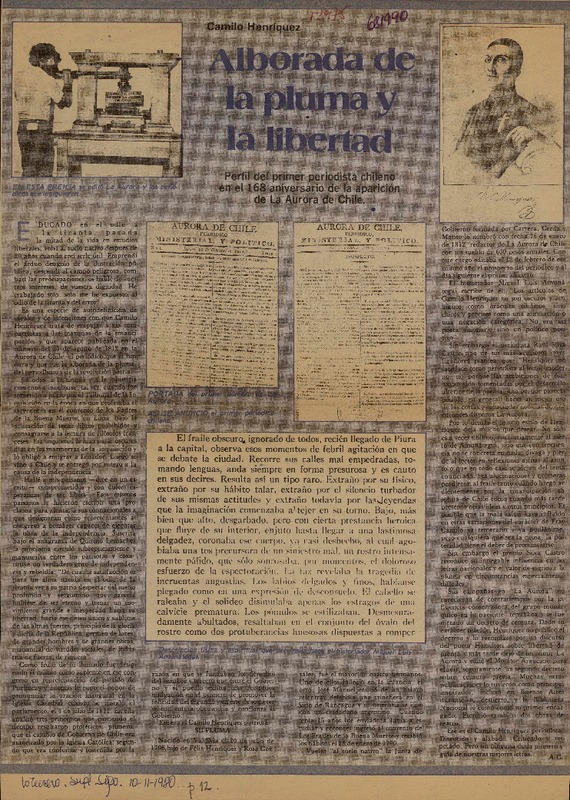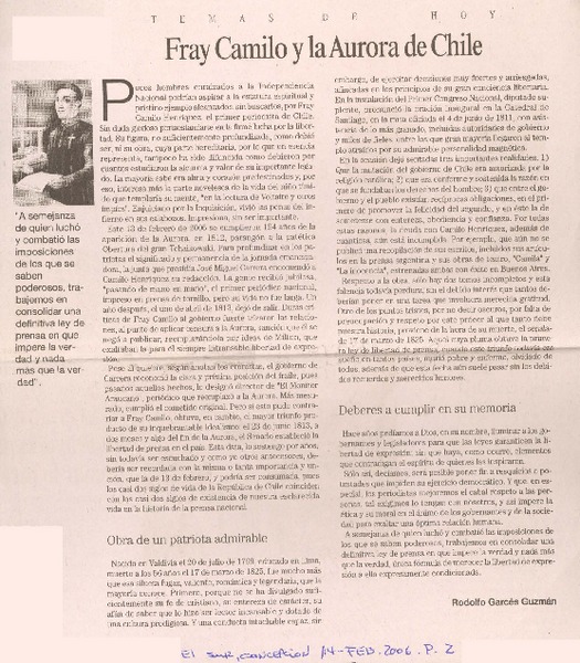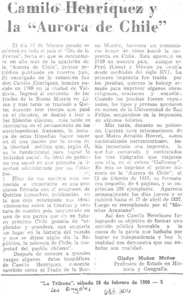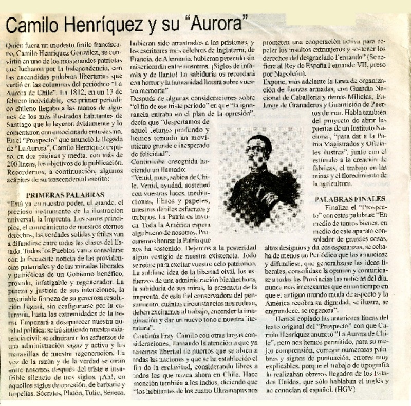 Camilo Henríquez y la "Aurora de Chile" [artículo] Gladys Muñoz Muñoz.