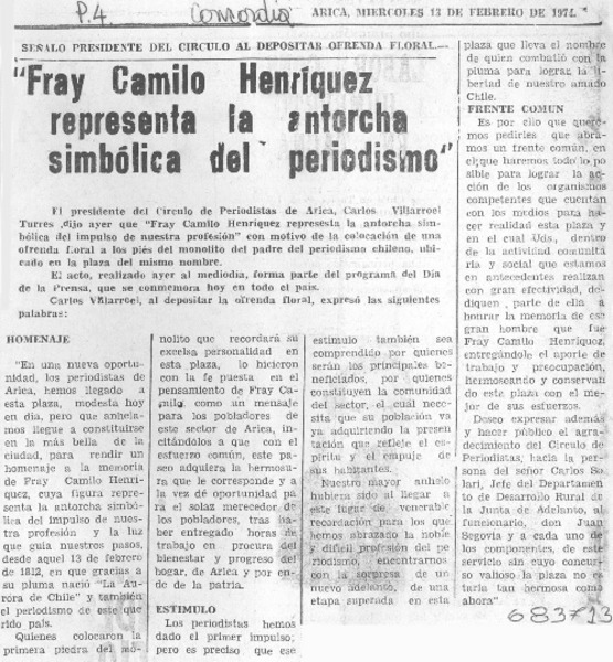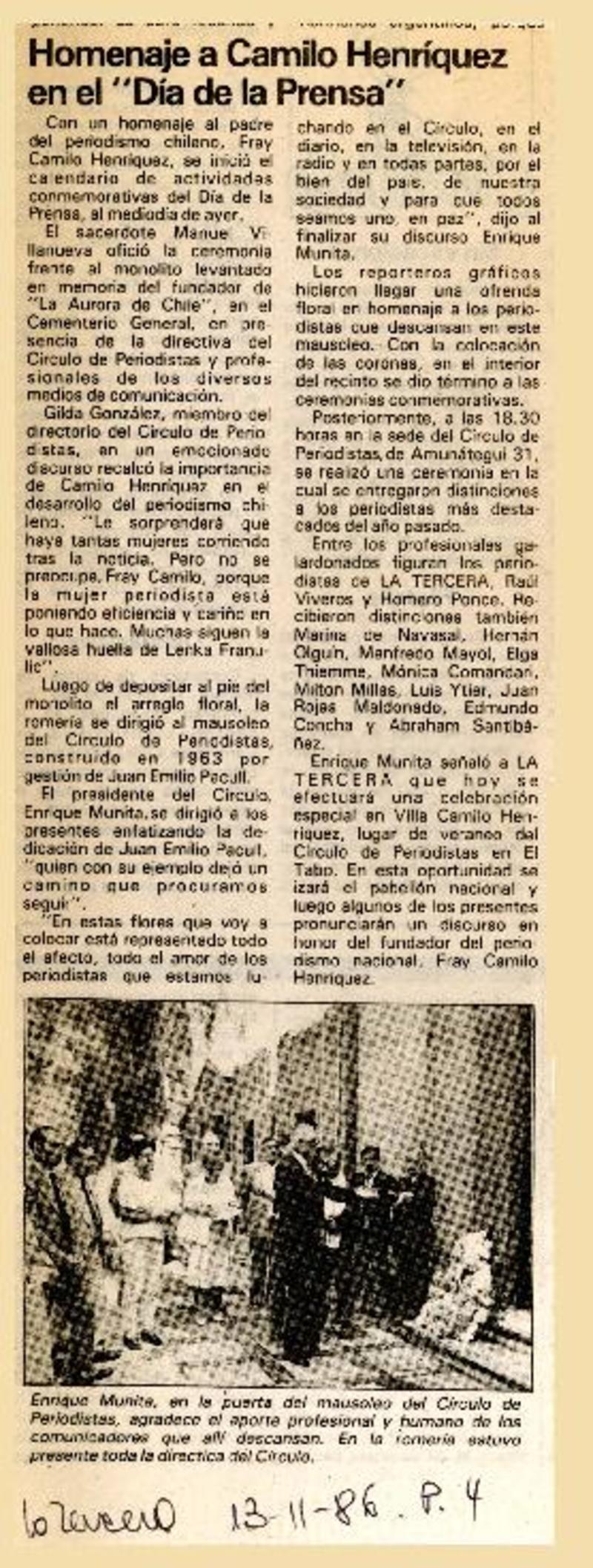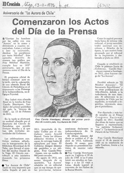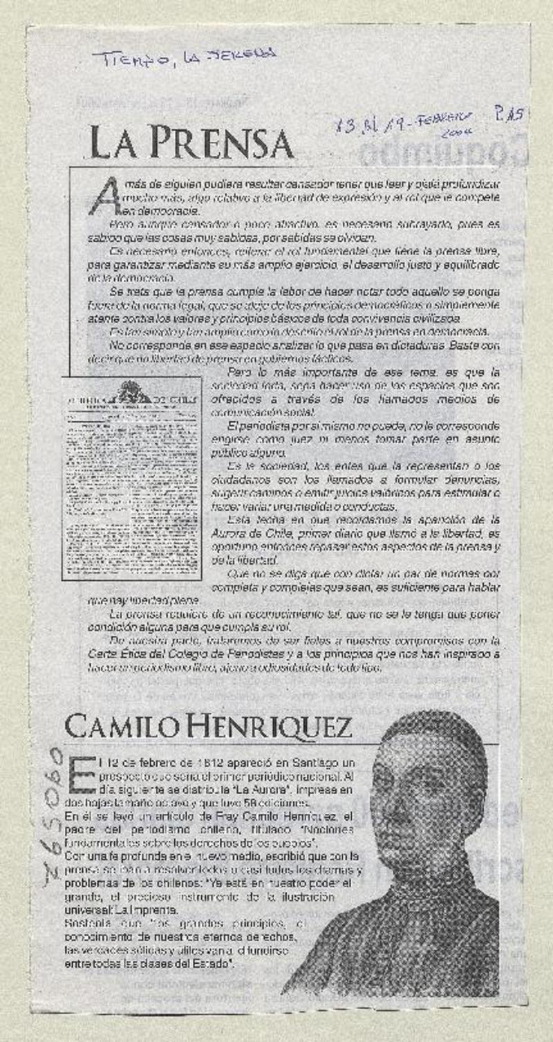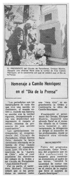 Homenaje a Camilo Henríquez en el "Día de la prensa" [artículo].